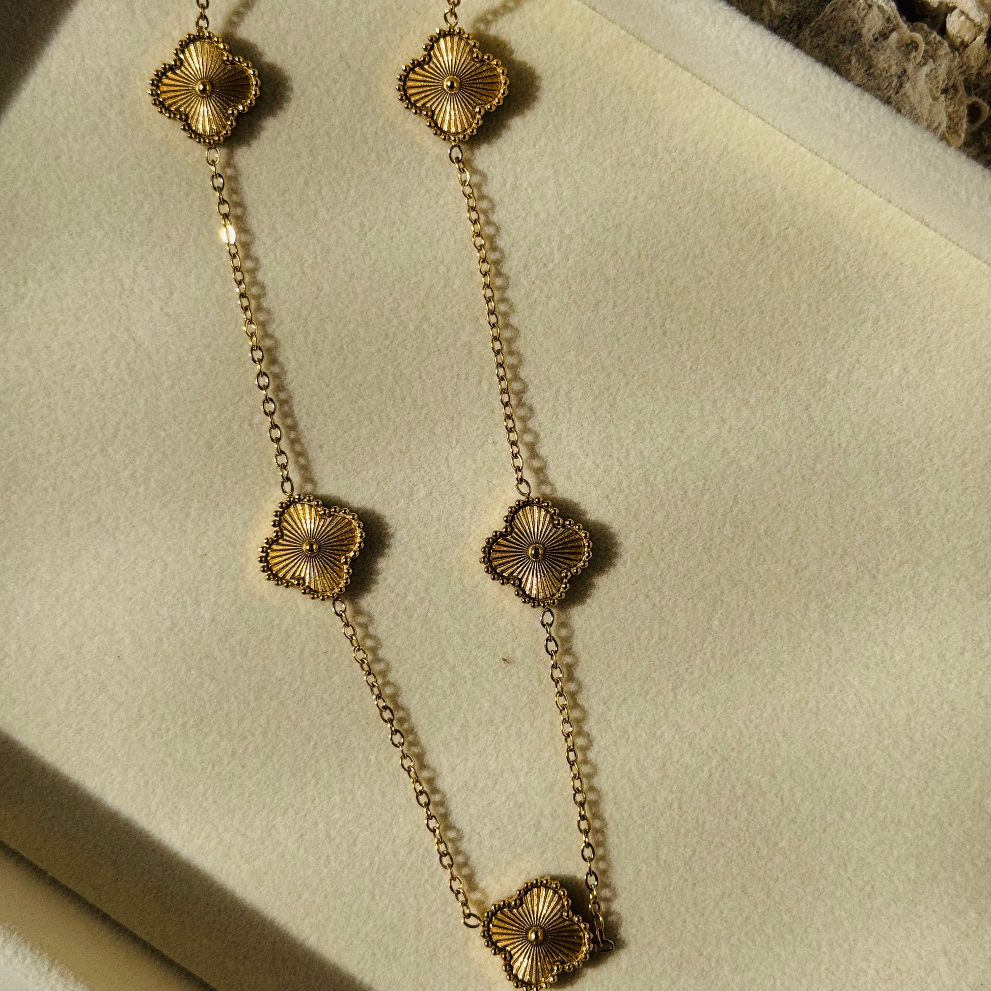 Crafted with care and intention, our pieces are made from high-quality stainless steel and coated with a luxurious layer of 18k gold plating.They’re waterproof, anti-tarnish, and hypoallergenic — designed to be your go-to essentials for everyday wear.