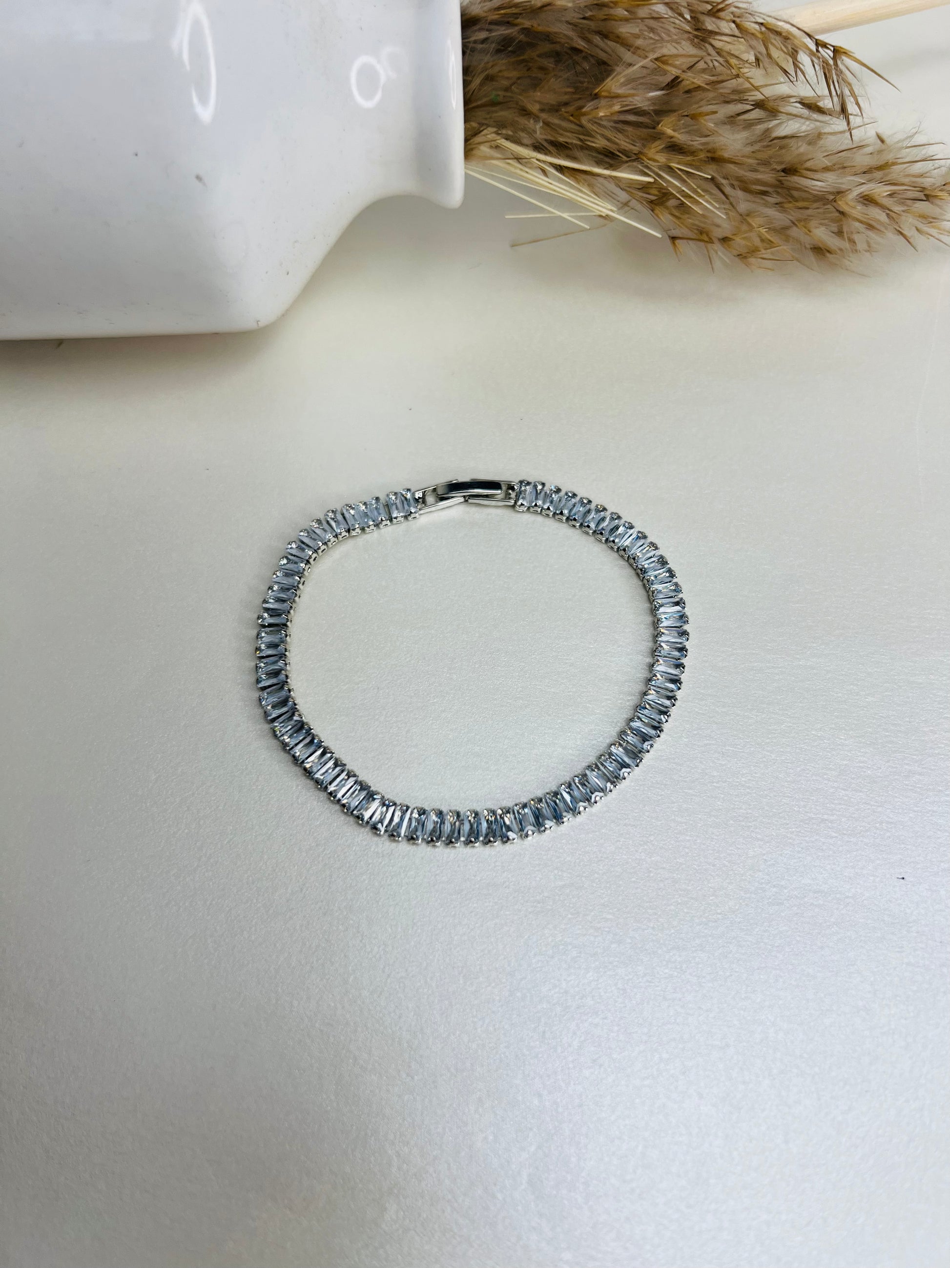 Classic and versatile, this medium-width silver bracelet delivers just the right amount of shine for everyday elegance. A must-have in any minimal jewelry collection. Our Tennis Bracelet features a sleek row of high-shine cubic zirconia stones, perfectly aligned for maximum brilliance. Lightweight, versatile, and effortlessly chic.